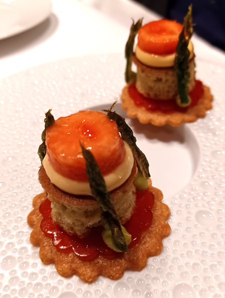 'Karamellisierte Kalamata Olive, Pommes soufflées & Zitronenkaviar',