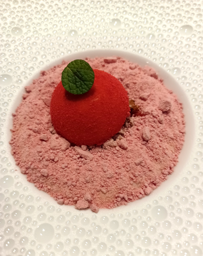 Das Champagner Cremesorbet „Edition Ruinart Rosé“ kam wie vor drei