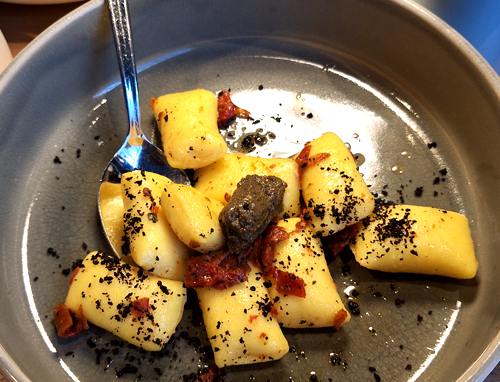 Zwar handelt es sich beim Treudelberg um ein gehobenes Hotel, einzelne Posten auf der normalen Speisekarte wirken allerdings nicht eben kundenfreundlich kalkuliert, z.B. Pimientos de Padrón mit Meersalz und Olivenöl für 12,00 €. Ernsthaft?
