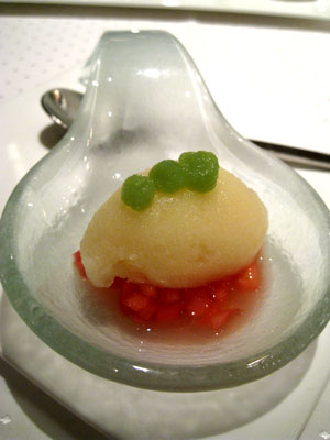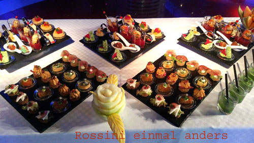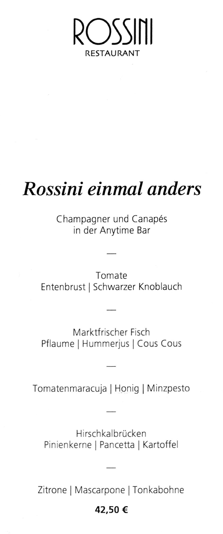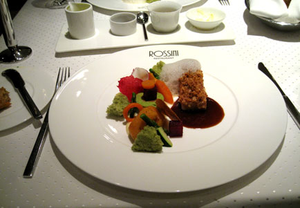 Nur Mut!, möchte man der jungen Küchenmannschaft zurufen - ihr habt so wenige Gäste, da könnt ihr ruhig etwas wagen. Im Gourmetrestaurant muss es nicht allen Passagieren munden (die meisten kommen ja ohnedies nicht) und wer ins Rossini geht, will im allgemeinen ganz bewusst dem Einheitsgeschmack der Buffets entfliehen.