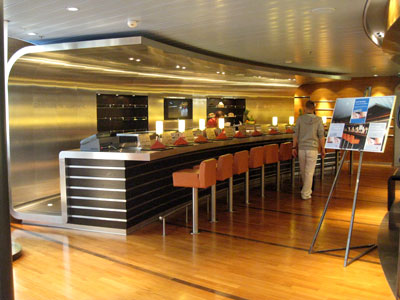 Im April 2012 (Hamburg/Le Havre/Dover/Antwerpen/Amsterdam/Hamburg) wurde die unterkühlt designte, aber doch nicht zu coole Sushi-Bar auf Deck 9 nur wenig frequentiert, Reservierungen waren daher nicht nötig.