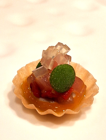 ('Neues entdecken') "Gänseleber, Mandarine, Yuzu & Schokolade". Ein sehr