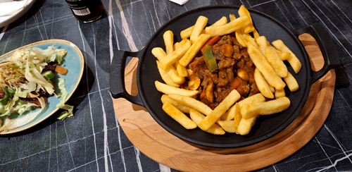 Das 'Pfannengericht' geschnetzeltes Lammfleisch, zubereitet wie eine Art