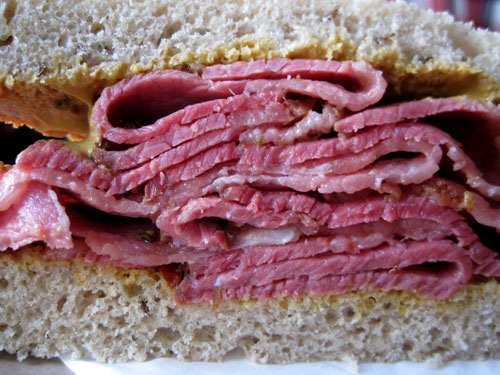 Das bekannteste Gericht ist hier Pastrami, ein geräuchertes und