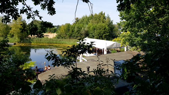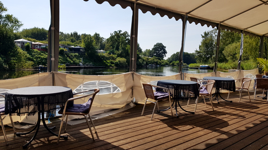 befindet sich auf einem Ponton am Seeufer. Und sobald man mit Blick auf
