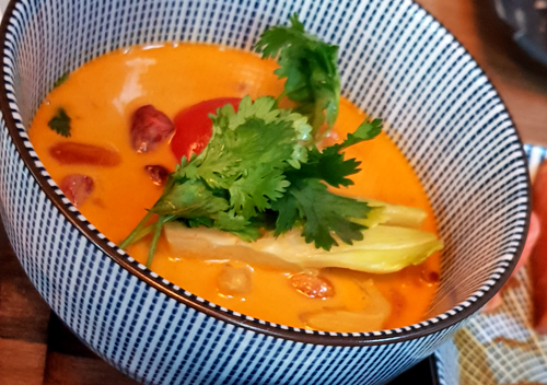 Dann ging es weiter mit einem perfekten Süßkartoffelcurry und Reis,