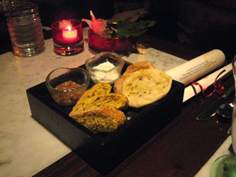 Ingwerbrot, Naanbrot und Dips auf heißen Steinen /