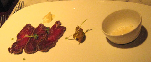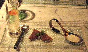 Eine Überraschung der scharfen Art bot das Vorspeisentellerchen 'Togarashi-Thunfisch