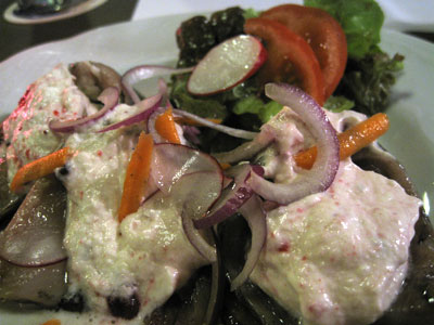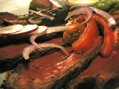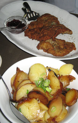 Ganz anders "Roastbeef kalt rosa gebraten dazu Remouladensauce und Salatbeilage" (13,90 €) - wunderbar zartes und saftiges Fleisch, nicht zu dünn geschnitten und ausgesprochen aromatisch - besser geht es kaum! Die Bratkartoffeln dazu fanden wir ganz ordentlich, allerdings zu ölig und zu wenig knusprig, um perfekt zu sein: