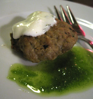 "Wir suchen Leute die Lust auf Gastro haben, alles andere klären wir in einem persönlichen Gespräch. Eine Ausbildung ist nicht unbedingt von Nöten", so lasen wir auf der Webseite des Dorfkrugs und befürchteten wahrlich Schlimmes. Aber Entwarnung in Form freundlicher Bedienung ließ uns schnell entspannen und uns über einen gelungenen Küchengruß freuen - eine lauwarme, sehr würzige Frikadelle!