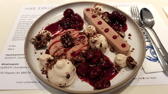 Nougat-Parfait mit Kirschen, Portwein und Kaffee mit 12,50 Euro etwas