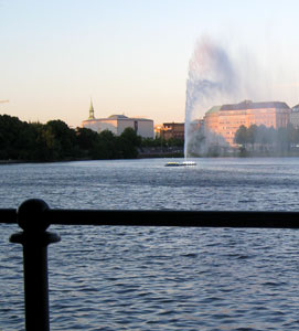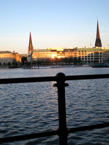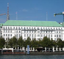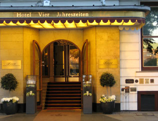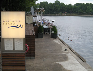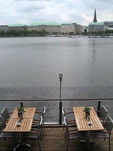 natürlich bei strömendem Hamburger Regen, in den Grill des Hotels Vier