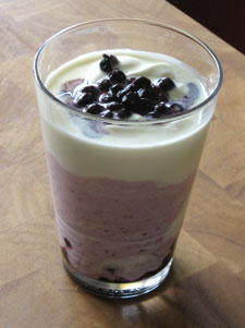 schließlich das Heidelbeerdessert mit Dickmilch, Sahne und