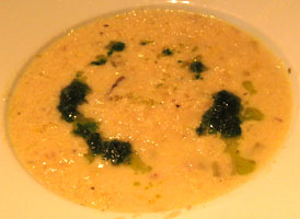 Die Sauerkrautsuppe kam erwartungsgemäß recht säuerlich daher, es war aber eine angenehm fruchtige Säure, die gut mit der vollmundigen Grundlage (Hühnerbrühe) harmonierte - lecker! Reichlich Weißwein und Sahne konnten ihre Anwesenheit nicht verleugnen, das Petersilienöl allerdings war nur etwas fürs Auge. Befürchtungen hinsichtlich der erwähnten Flatulenzen sollten sich nach einigen Stunden als sehr berechtigt erweisen.