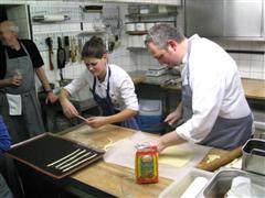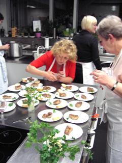 Die Kochkurse an den Sonntagen sind so gestaltet, dass man dem Meister über die Schulter blickt, der Hase muss also nicht selbst pariert werden. Gelegentlich können Kursteilnehmer Speisen aufdekorieren oder Gewürzblättchen zupfen.