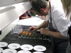 Sehr hilfreich und lohnenswert war der Tapas-Kurs am 17. Januar 2010 in der Küchenwerkstatt. Gerald Zogbaum ist allerdings nicht der große Sonnyboy-Entertainer, wie ihn viele, die gern Kochshows sehen, vielleicht erwarten. Er ist eher der Typ ruhiger, konsequenter Arbeiter, der auch mal brummig sein kann. Eben Spitzenkoch, kein Clown. Aber er ist für Fragen stets offen, gibt erschöpfende Antworten und als Besucher nimmt man viel für die heimische Küche mit. Fürs leibliche Wohl während der Küchenarbeit wird von der fürsorglichen Frau Gnade allerdings auch bestens gesorgt: