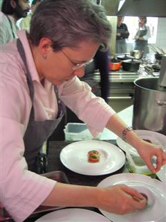 Die Gänge wurden einzeln zubereitet, auf Tellern drapiert und dann jeweils gemeinsam im Redaktionsbüro nebenan verspeist - rund 10 Gänge pro Tag: