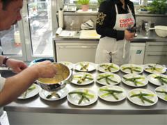 oben: Spargel mit frischen Morcheln - daneben: Rhabarber (ohne Spargel) Nach dem Kurs gibt es noch ein hochklassiges Mehrgängemenü im Restaurant und die Rezepte des Tages als Ausdruck:
