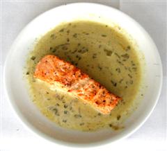 Der Lachs wurde langsam gegart, nicht ohne Thermometer: