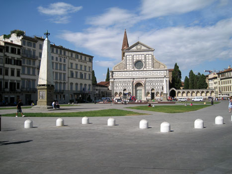 Die Basilika Santa Maria Novella, im Gebäude ganz rechts findet sich 'La Dantesca'