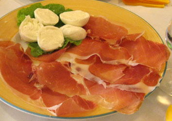 köstlichem Parmaschinken als Auflage, die mit den vier Käsesorten durch