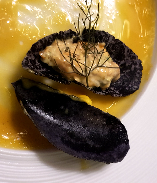 Tellerrand eine täuschend echt aussehende Miesmuschel aus allerfeinstem
