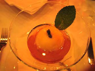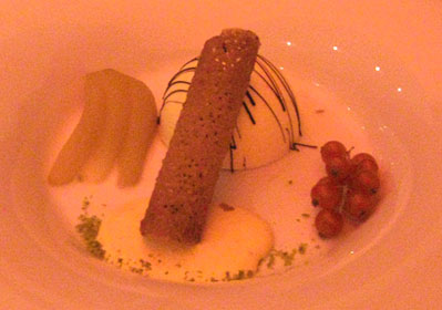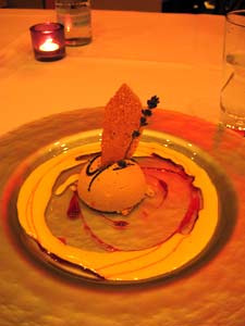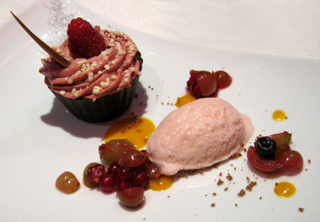 Vanillesauce kleckerte) und das Himbeer-Joghurt-Sorbet. Zu gewichtig kam