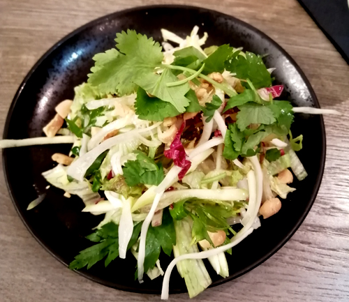den wirklich knackfrischen und sehr duftigen Salat, mit Erdnuss und