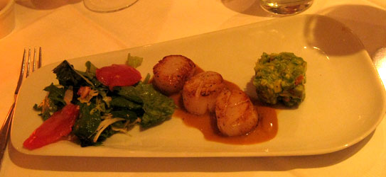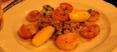 gebraten die Jacobsmuscheln mit grandioser Hummersauce, wunderbar