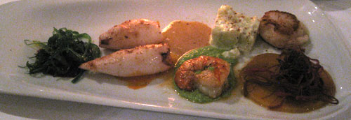 Spanische Köstlichkeiten mit Jakobsmuschel, Babycalamares und Scampi