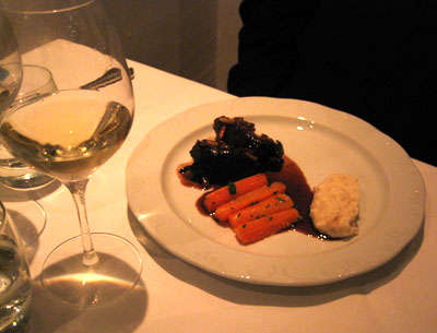 geschmorte Kalbfleisch. Nicht zu vergessen das Rotweineis zum Nachtisch,