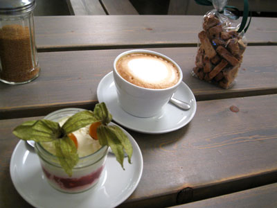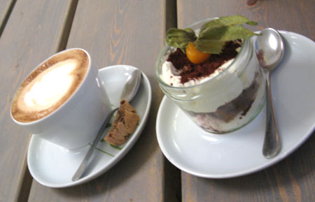 Ebenfalls gefallen hat uns das leichte Mascarpone-Himbeer-Dessert, eine feine und trotz des Frischkäseanteils nicht zu schwere Leckerei. Dagegen erwies sich das Tiramisu als veritable Enttäuschung: Die Sahne im oberen Bereich kam ältlich-zäh daher, unten im Glas fand sich statt Alkohol nur extrem dünnes Kaffeewasser - dann doch lieber 'Tiramisu von Zott' aus dem Kühlregal!