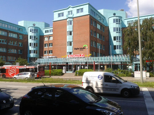 quasi schräg gegenüber vom UCI-Kino. Sobald man einen Parkplatz gefunden