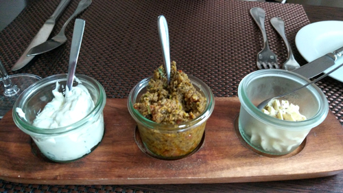 köstlich-würzige Tapenade und eine feine Creme, eine Art Remoulade. Als