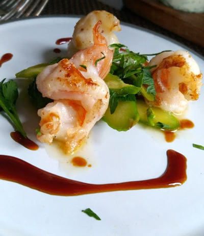 Der erste Gang bestand aus Garnelen mit grünem Spargel sowie mildsüßem