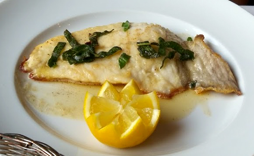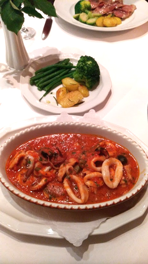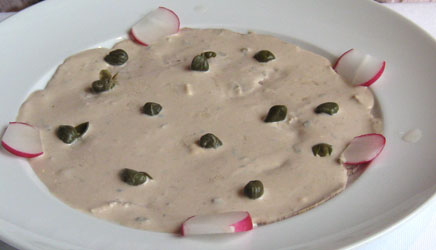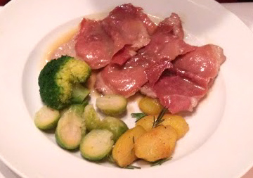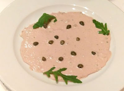 Mit ausgesuchter Qualität überzeugte als Vorspeise das Vitello Tonnato, makelloses, hauchdünn geschnittenes Fleisch unter einer extrem feinen und cremigen Thunfischsauce. Einfach ein Gedicht, möchte man sagen, wenngleich für 11,- Euro eine Spur mehr Deko als die fünf Radieschenscheiben und zwei Olivenöltropfen auf dem Tellerrand angemessen gewesen wäre: