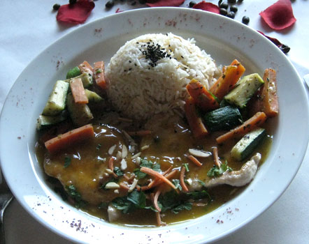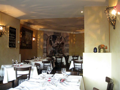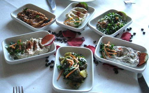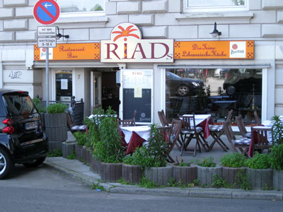 Das libanesische Restaurant Riads lebt wohl in erster Linie von Gästen, die vor oder nach Veranstaltungen in der benachbarten Musikhalle dort einkehren - mittags ist dort wenig los, mit uns waren gerade einmal zwei Tische besetzt. Zum Lokal selbst geht es ein paar Stufen abwärts, es ist nicht sonderlich hell. Am Fenster allerdings hat man einen schönen Blick zu den Gerichtsgebäuden und zum Fernsehturm.
