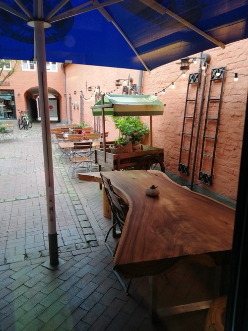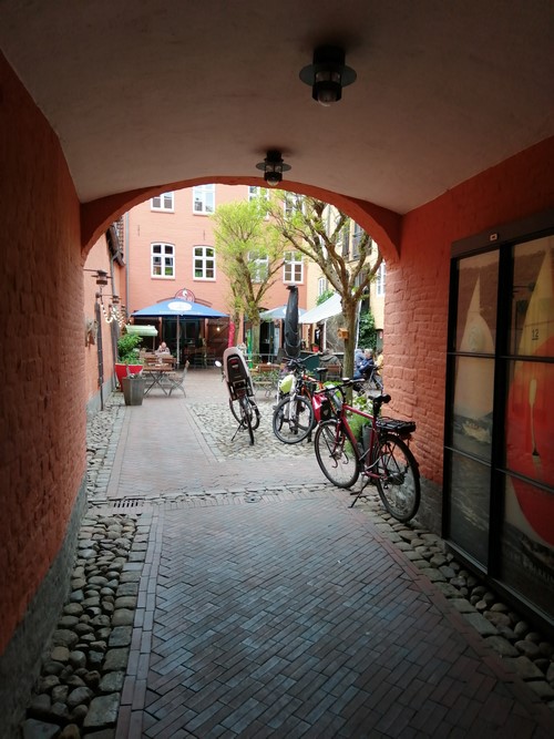 zur Roten Straße und dort in den Roten Hof, um unsere Zungen ein wenig