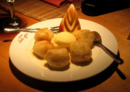 Daher wählten wir noch Nachtisch. Den gebackenen Bananen mit Eis haftete