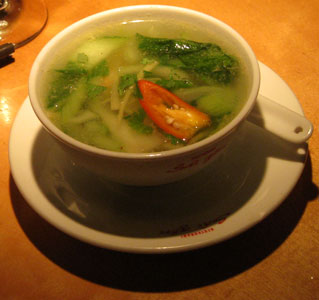 scharfen vietnamesischen Suppe aus Pak Choi, Shrimps und Ingwer. Die