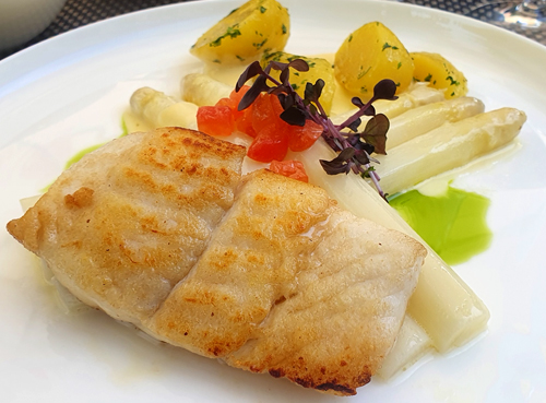 Steinbutt auf Spargel mit Salzkartoffeln, das Genussgenie die gebratene