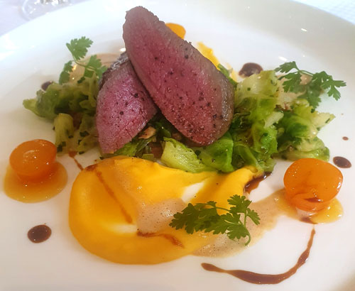 Vierländer Ente, aber auch Rehgeschnetzeltes oder gebackener Fisch