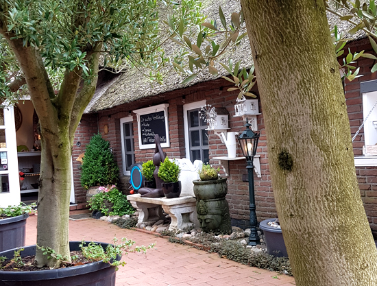 umgeben, überall sind Dekoartikel platziert, dazwischen bepflanzte