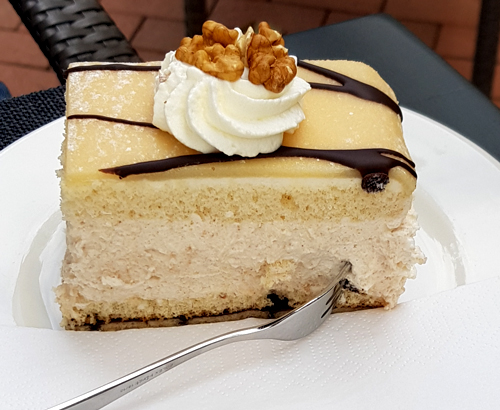 gemachten Torten, nämlich die Marzipan- und die Apfel-Schmand-Schnitte.