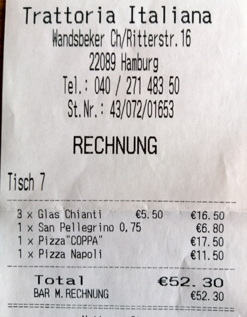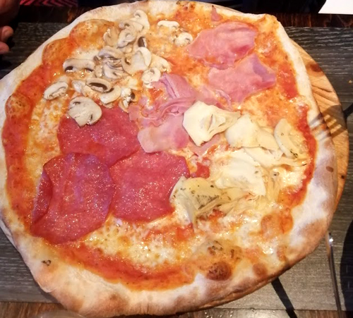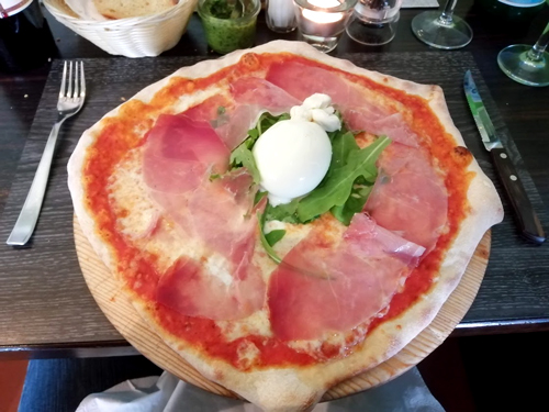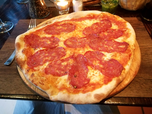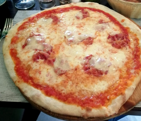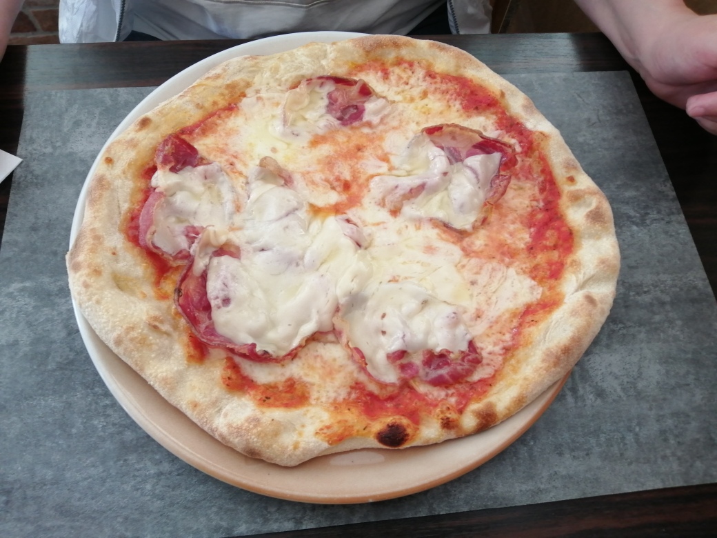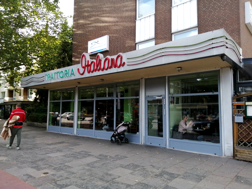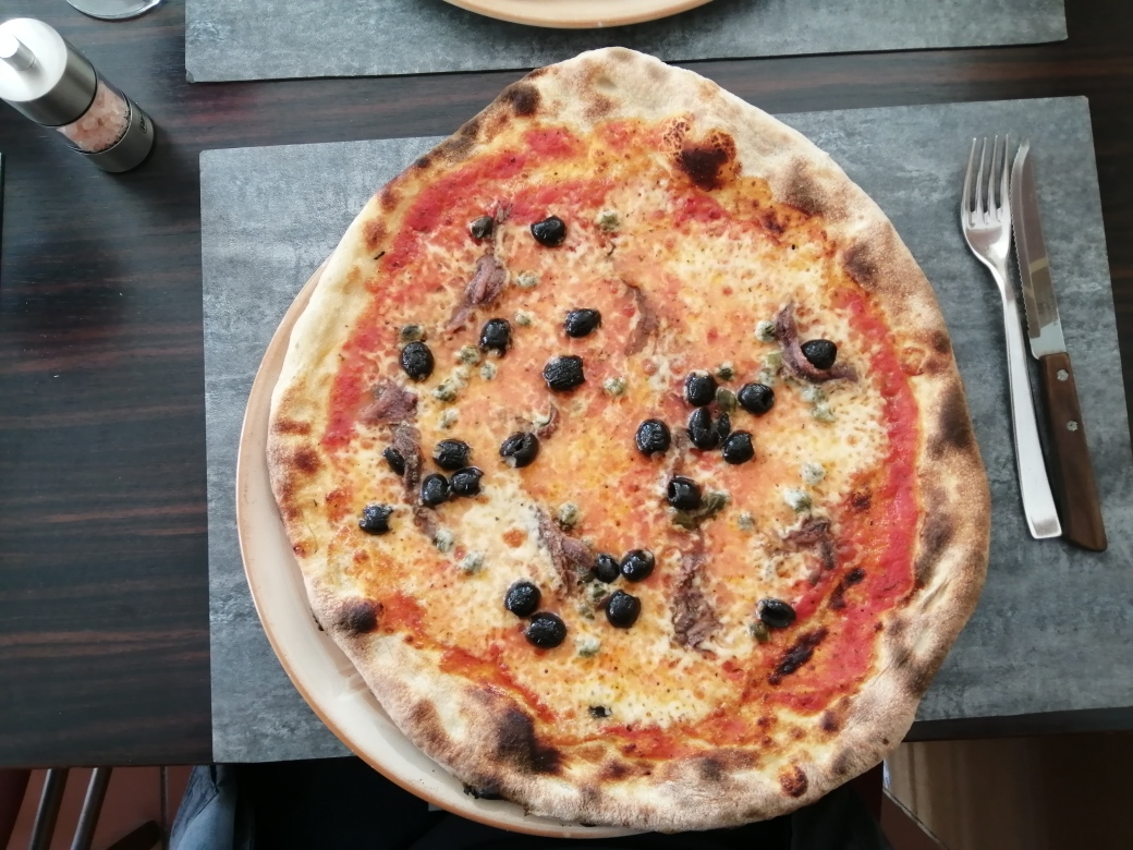 --- Im Juni 2023 lässt sich konstatieren: Alles beim Alten, glücklicherweise. Der Chef schmettert noch immer gelegentlich Arien, diesmal Schubert (auf Deutsch!). Die Weinpreise haben sich nicht verändert, ein solider Chianti Classico kostet noch immer 6,50 e pro Glas. Die Pizzen überzeugen mit bewährter Qualität - da kann man nichts falsch machen. Und die Lautstärke ist noch immer infernalisch, wir gehen ausschließlich mittags dahin.