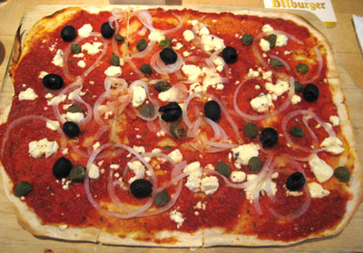 hoffnungslos übersalzen. Kapern oder Käse hätten sich noch