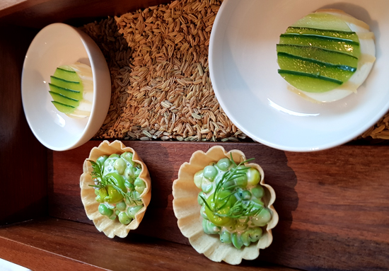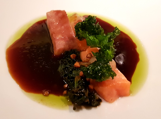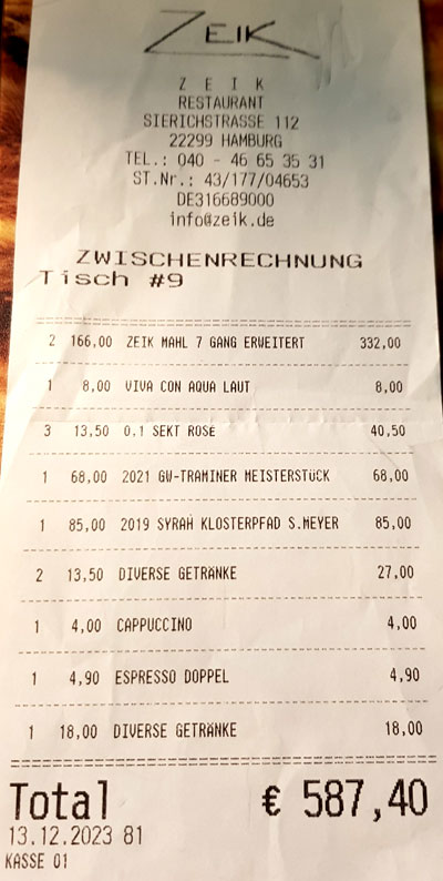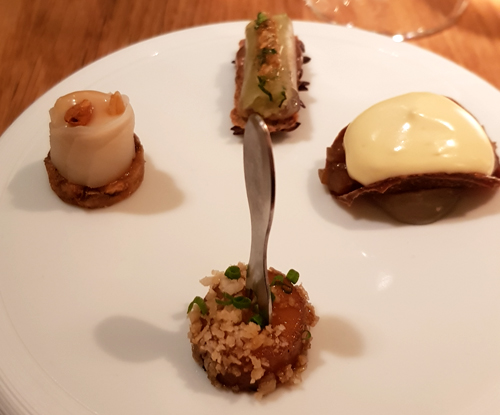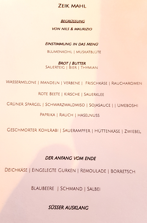 Das ganze Menü (64,- € für zwei) kommt inklusive der beiden Küchengrüße